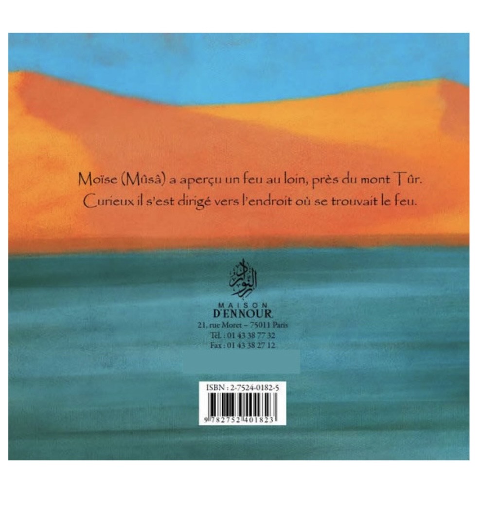 Moïse (Moussa paix sur lui) a aperçu un feu au loin, près du mont Tûr. Curieux il s’est dirigé vers l’endroit où se trouvait le feu. Avec un style simple et des belles illustrations qui rendent le récit vivant et attrayant .
